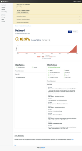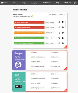 Shopify is an e-commerce platform for online stores and retail point-of-sale systems. Chad and Charlie developed a supplementary webapp called ShopStatus. ShopStatus acts as a Shopify store monitor to alert owners so that they can more quickly resolve an issue and save time and money.